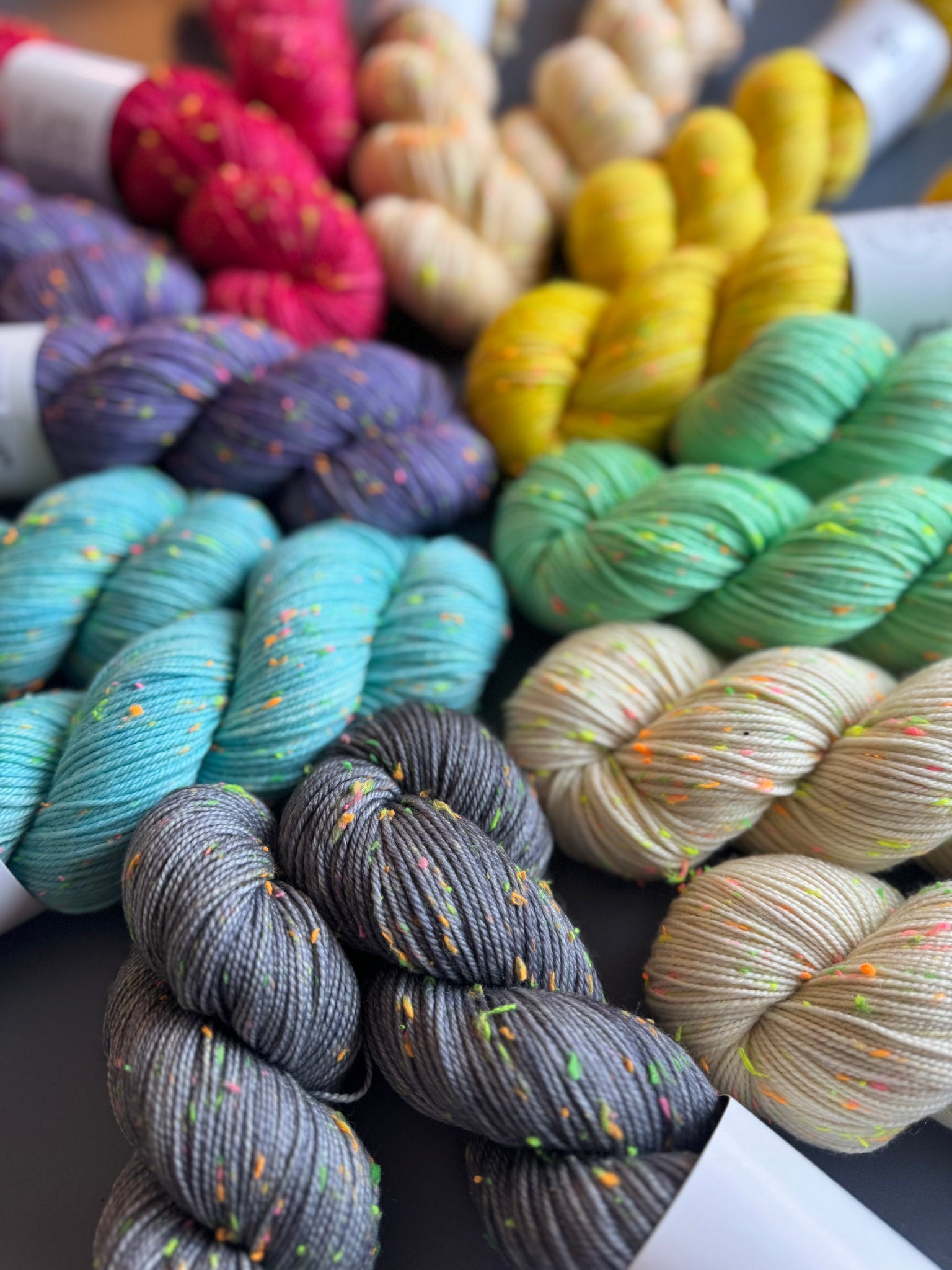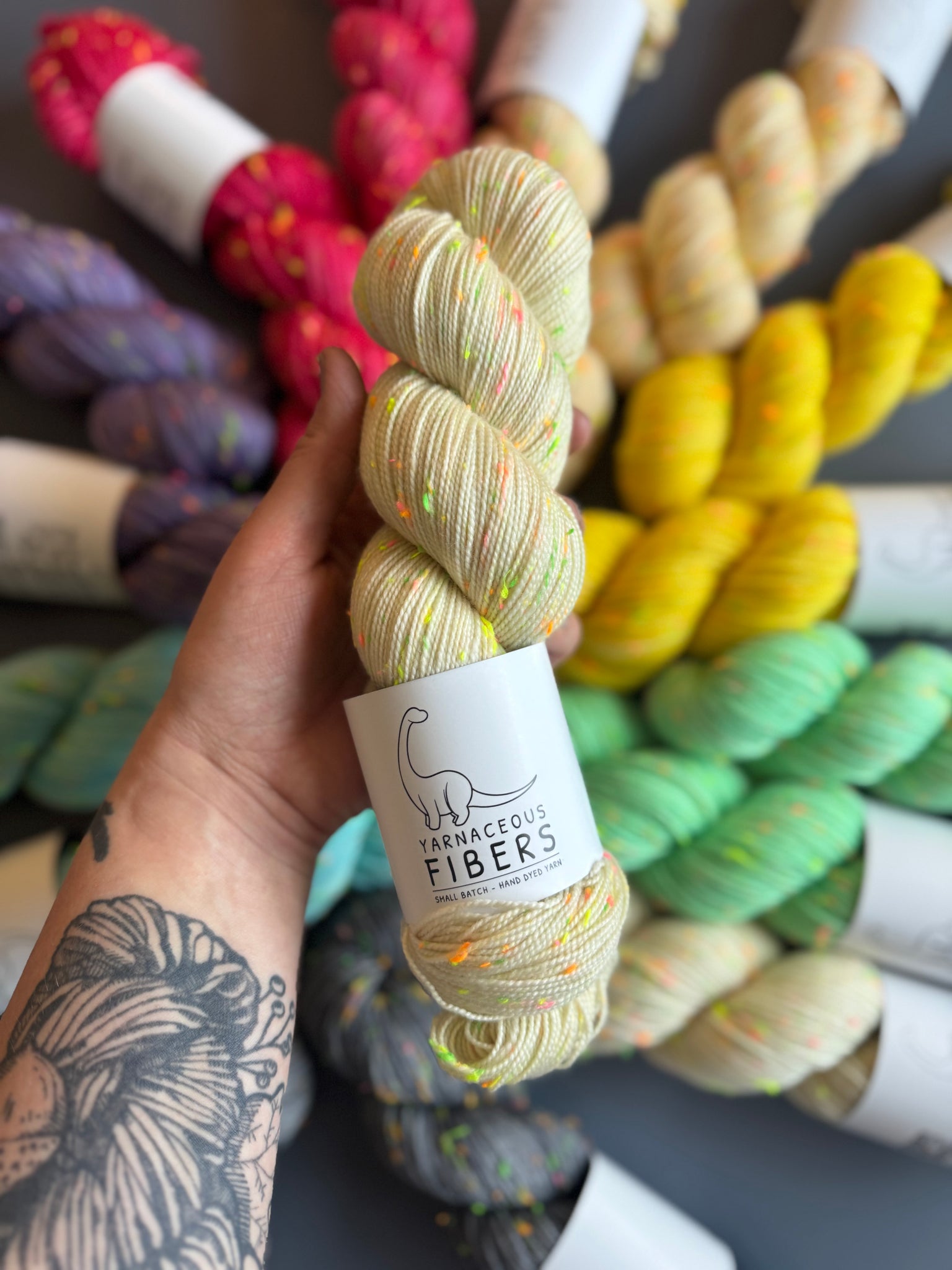 Neo Fingering: 85% Superwash Merino & 15% Nylon. 437 yards per 100 gram.