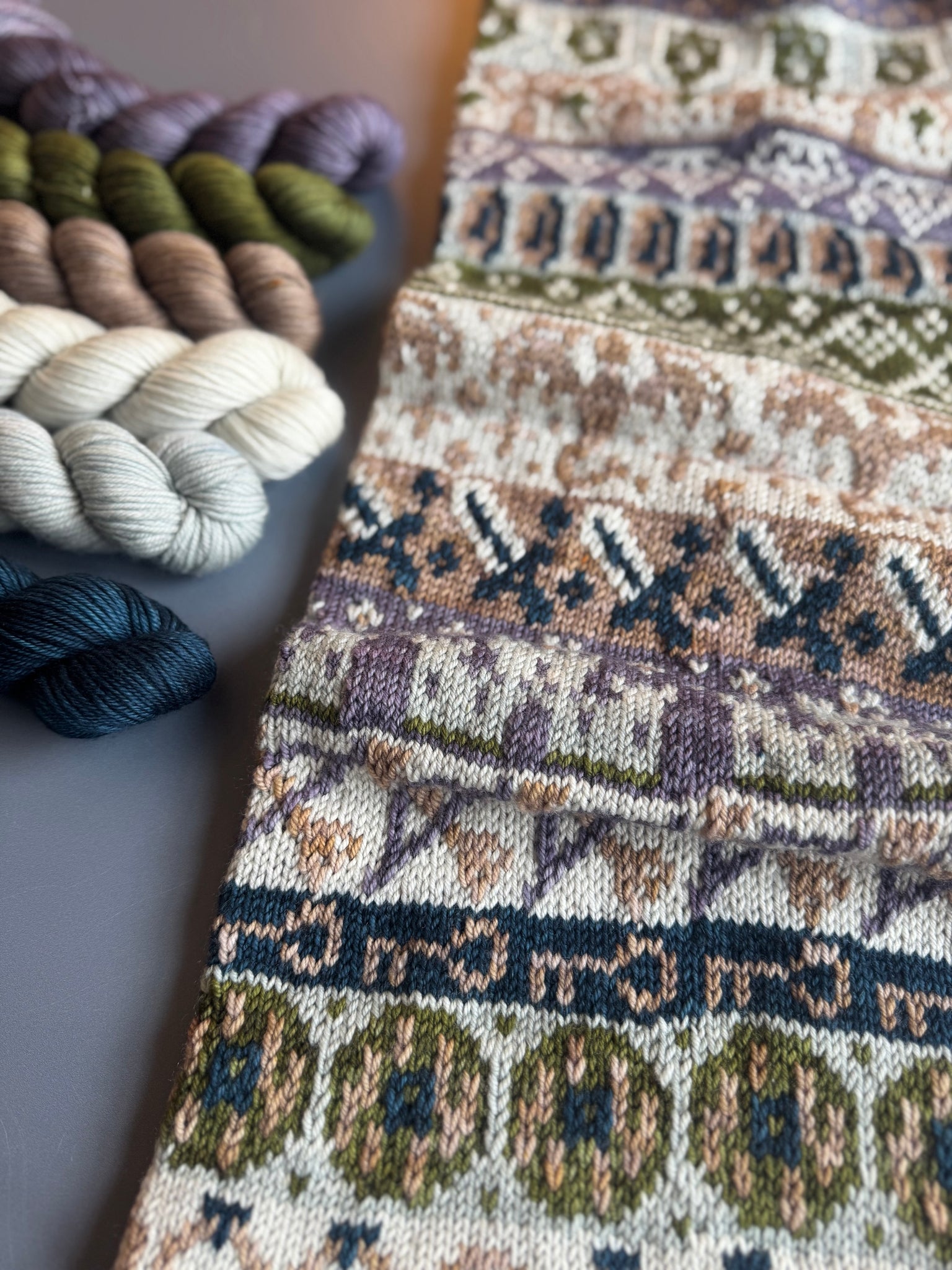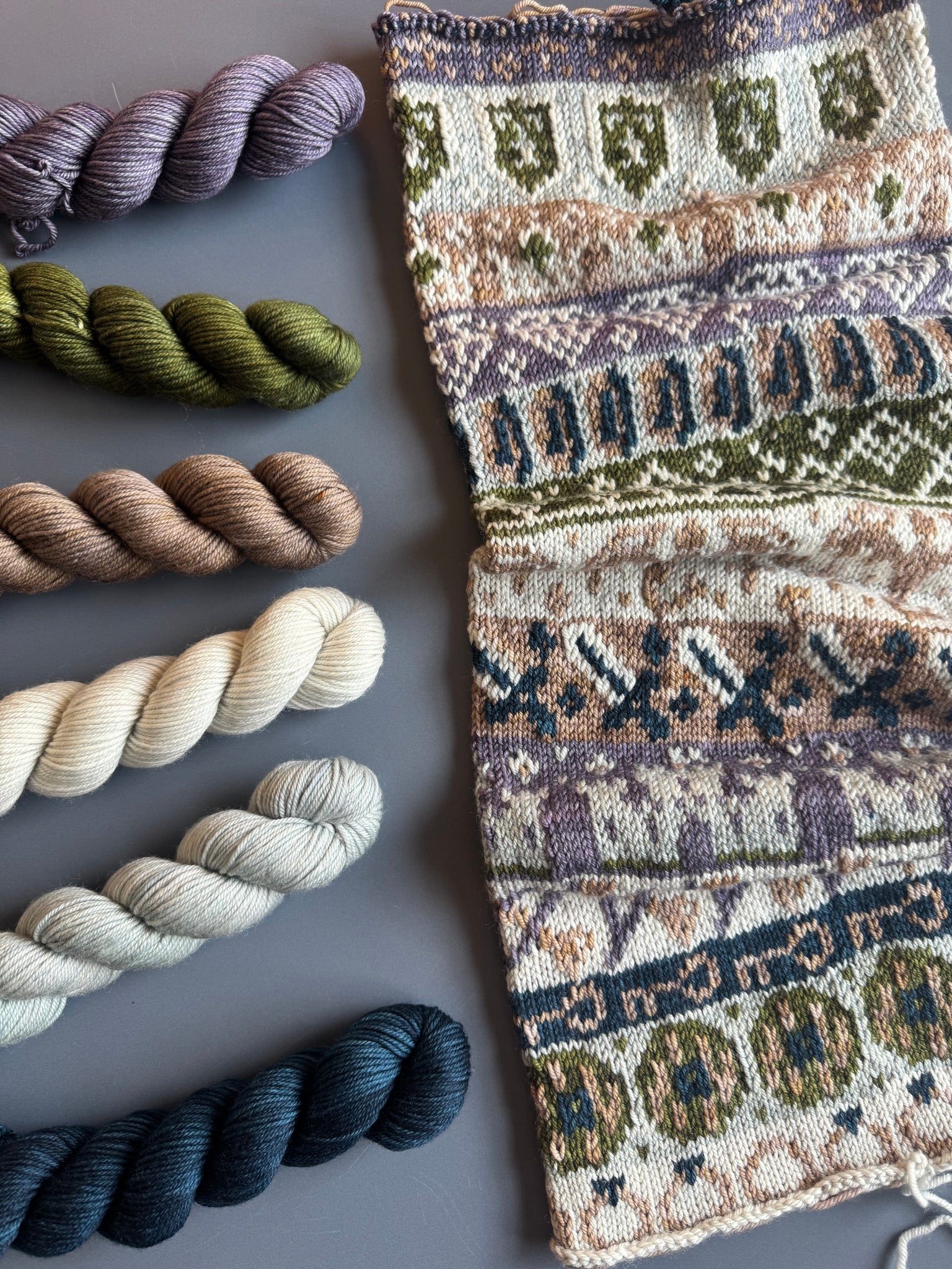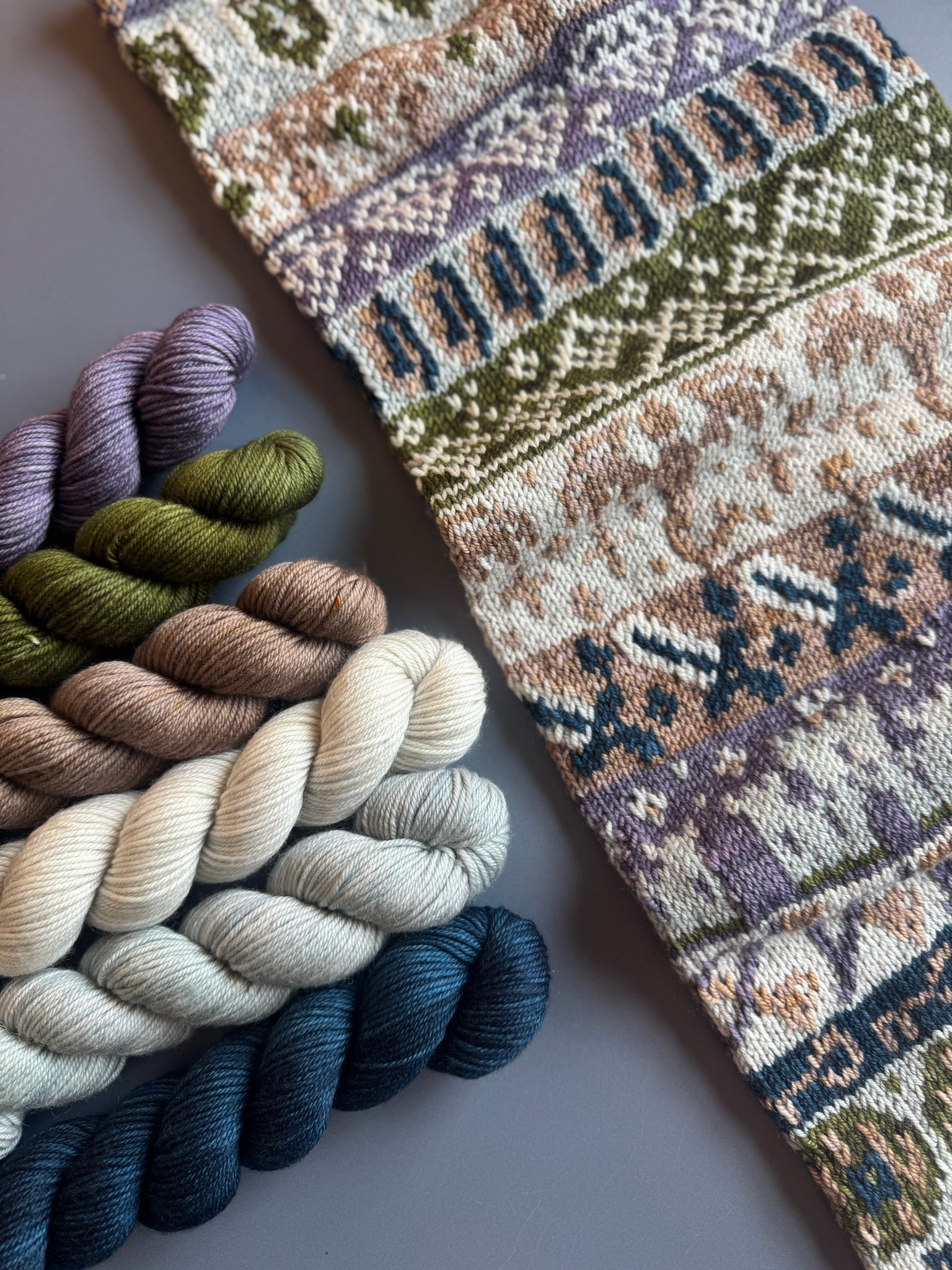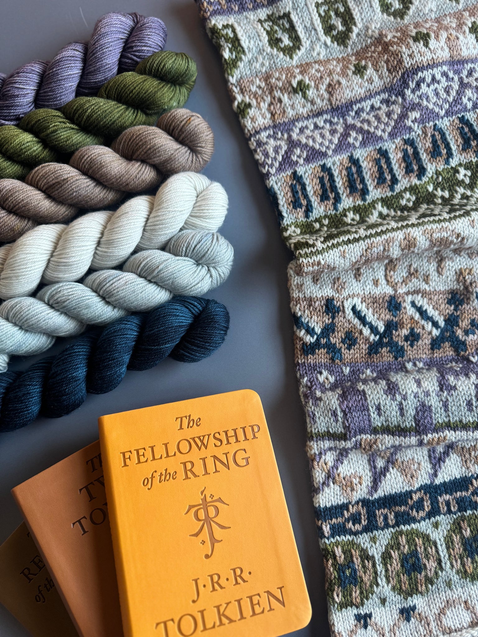 Introducing our Travels Through Middle Earth Tonal Set in collaboration with Emily of Fangirl Fibers! Each Set includes 6 half skeins perfect for knitting a Lord of the Rings inspired Doodle Design by Jamie Lomax of Pacific Knit Co using charts from the Fantasy Doodle Deck.