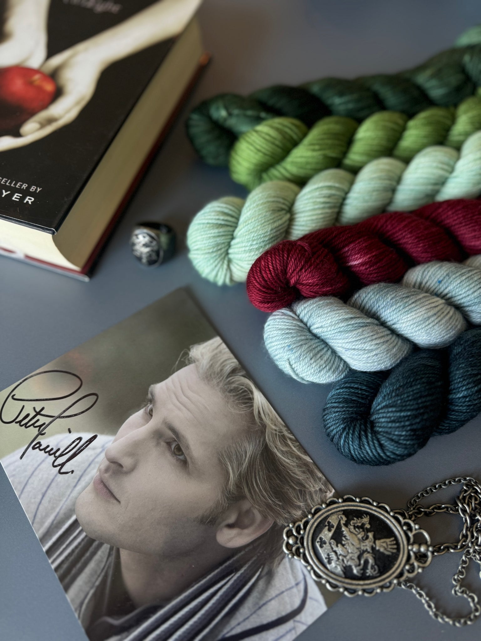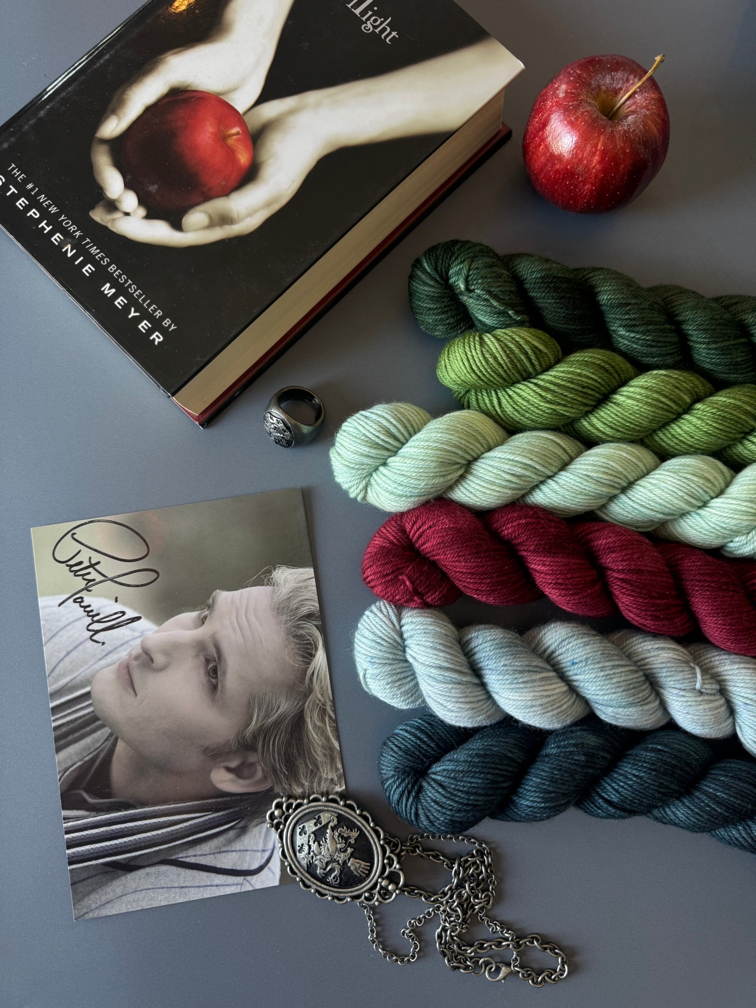 Introducing our Twilight Inspired Tonal Set in collaboration with Emily of Fangirl Fibers! Each Set includes 6 half skeins perfect for knitting a Pacific Inspired Cowl with Twilight-esque charts from Jamie Lomax of Pacific Knit Co using charts from the mash up of Monster, Cryptid, and so many more charts! Includes a list of all included in the sample.