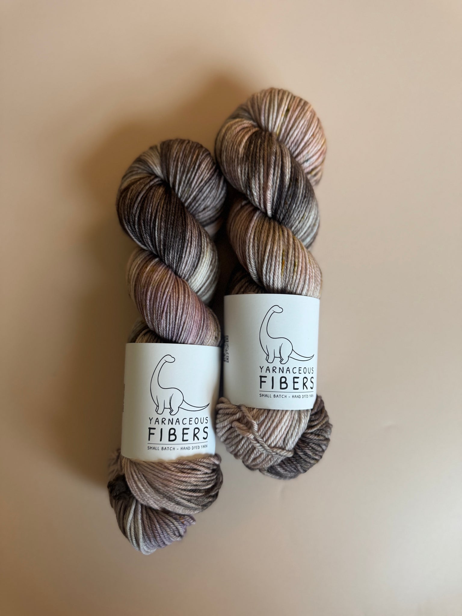 Bronto DK: 85% Superwash Merino Wool & 15% Nylon. 246 yards per 100 gram skein.