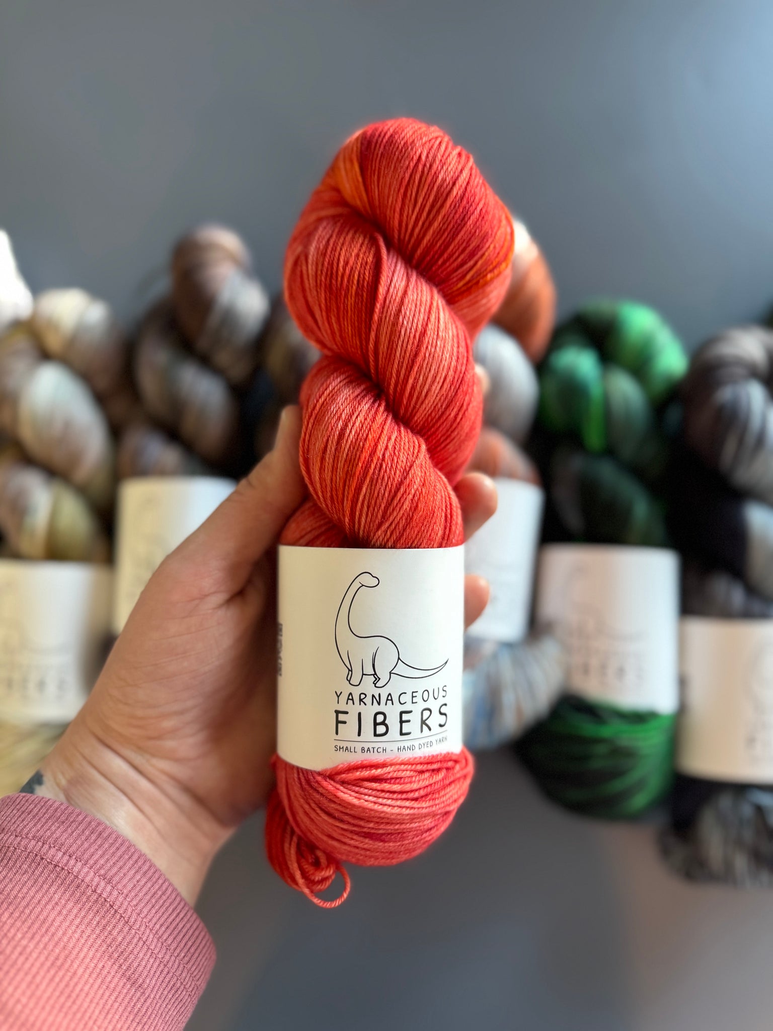 Salta Fingering: 85% Superwash Merino Wool & 15% Nylon. 437 yards per 100 gram skein.