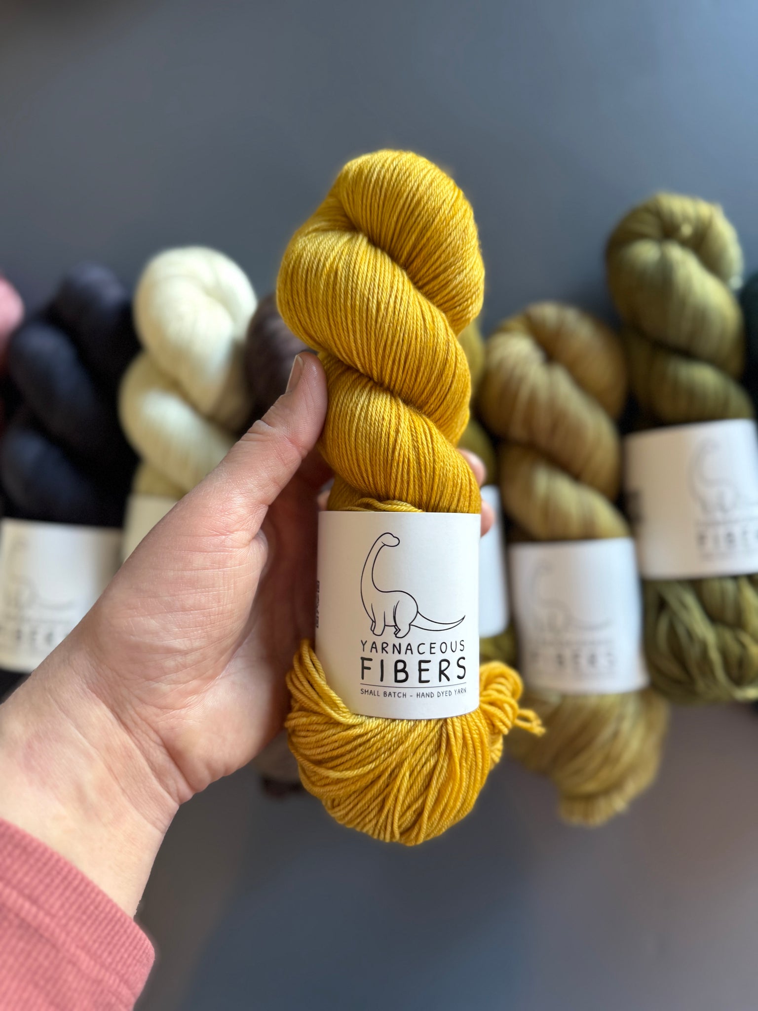 Salta Fingering: 85% Superwash Merino Wool & 15% Nylon. 437 yards per 100 gram skein.