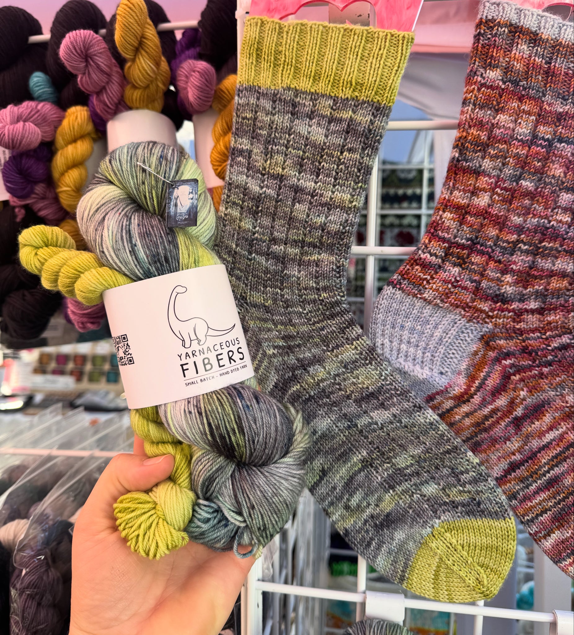 Each sock set includes one full 100 gram skein and one 20 gram mini skein. Option to purchase a sock set or single skeins of Bronto DK and Salta Fingering only at this time. Single Skeins will be variegated option.