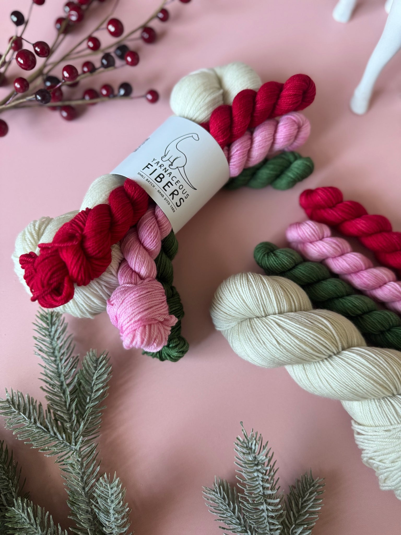 Full skein set includes a full skein plus 3 mini skeins in Salta Fingering.