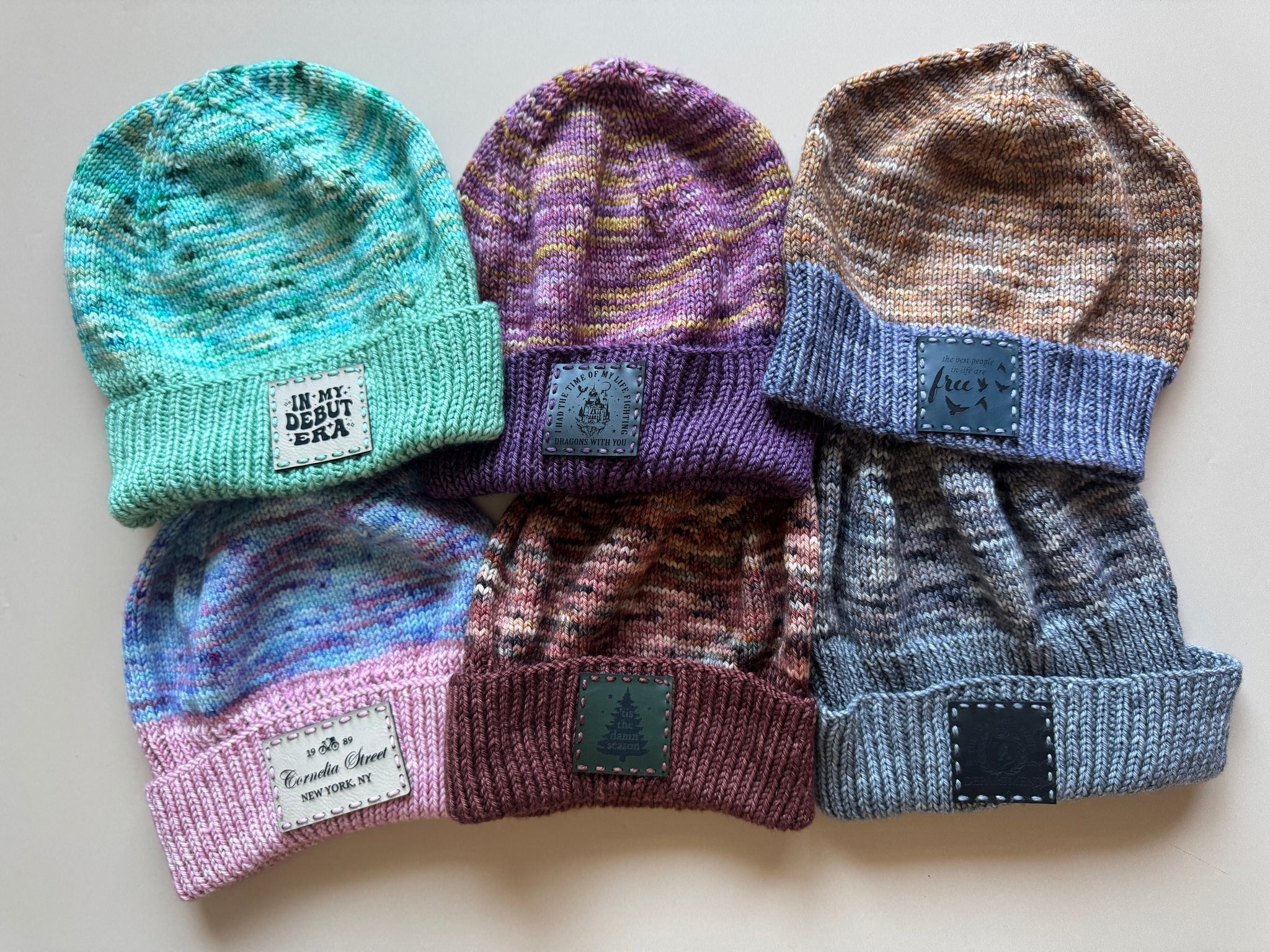 Hats knit using the Base Beanie 1 and 2 by Jamie Lomax of Pacific Knit Co.