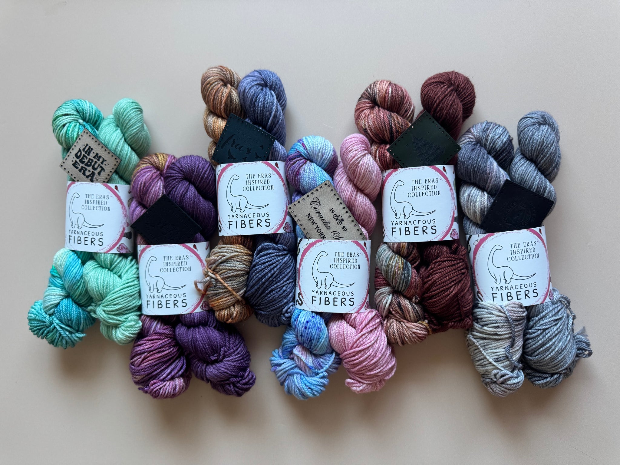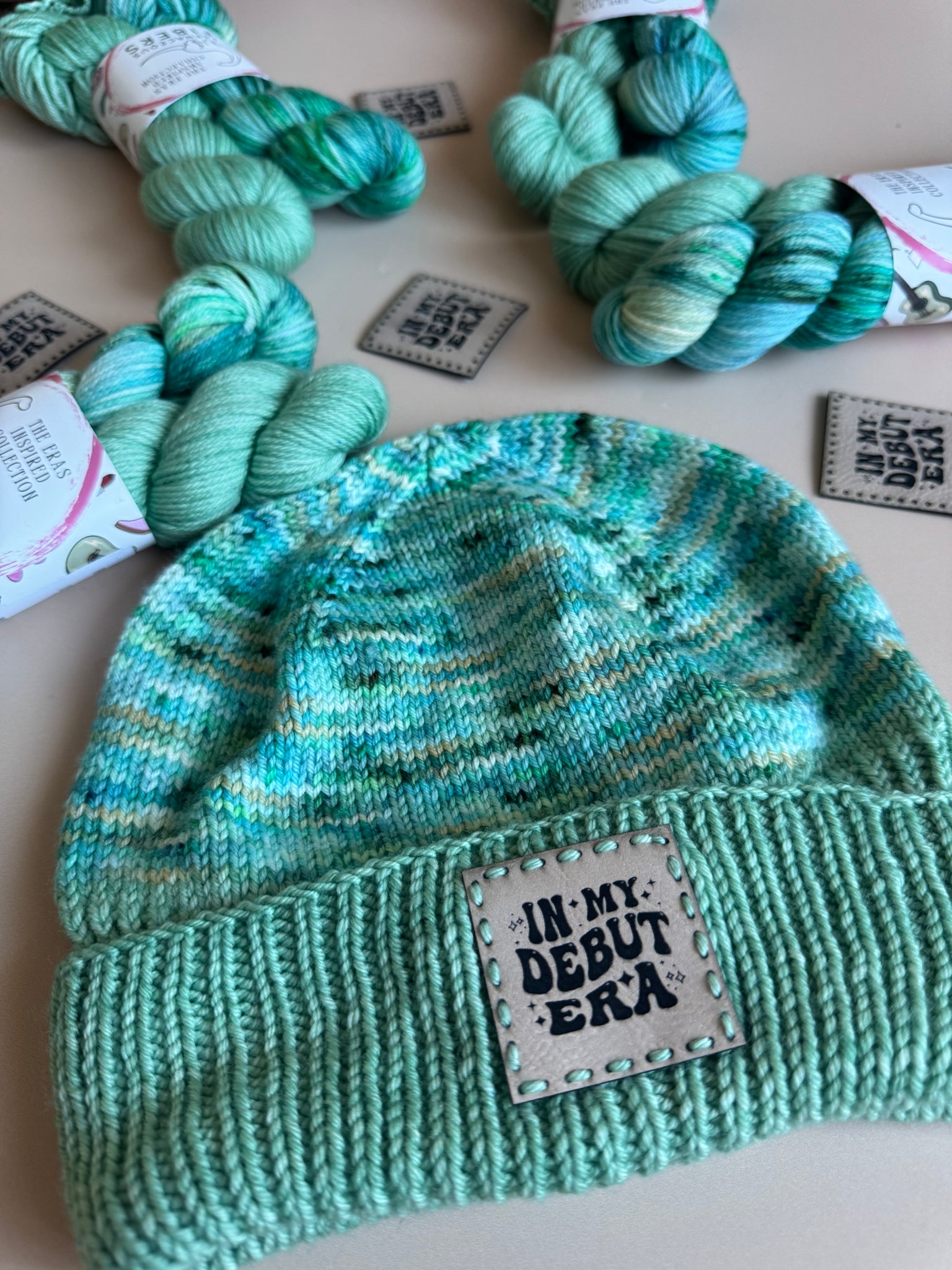 Our Hat Sets are perfect for knitting yourself a Tailor Swift Eras Inspired Beanie! Each set comes with a 50 gram skein of Taylor Swift and Our Song and a "Debut Era" hat tag.