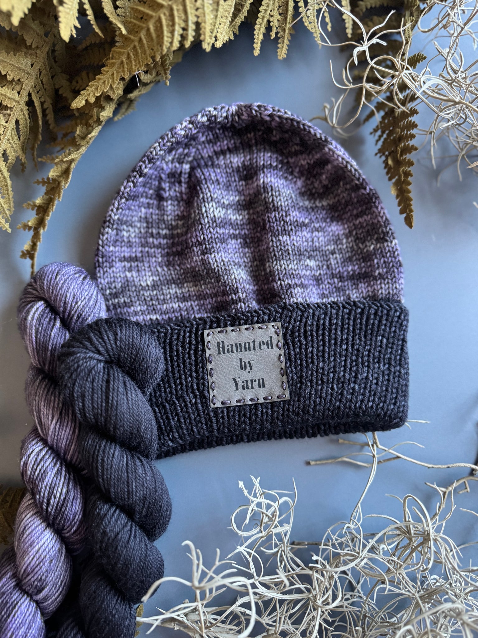 Our Hat Sets are perfect for knitting yourself a Wednesday Inspired Beanie! Each set comes with a 50 gram skein of My Head is a Dark Place and Darker Color and a "Haunted by Yarn" hat tag.