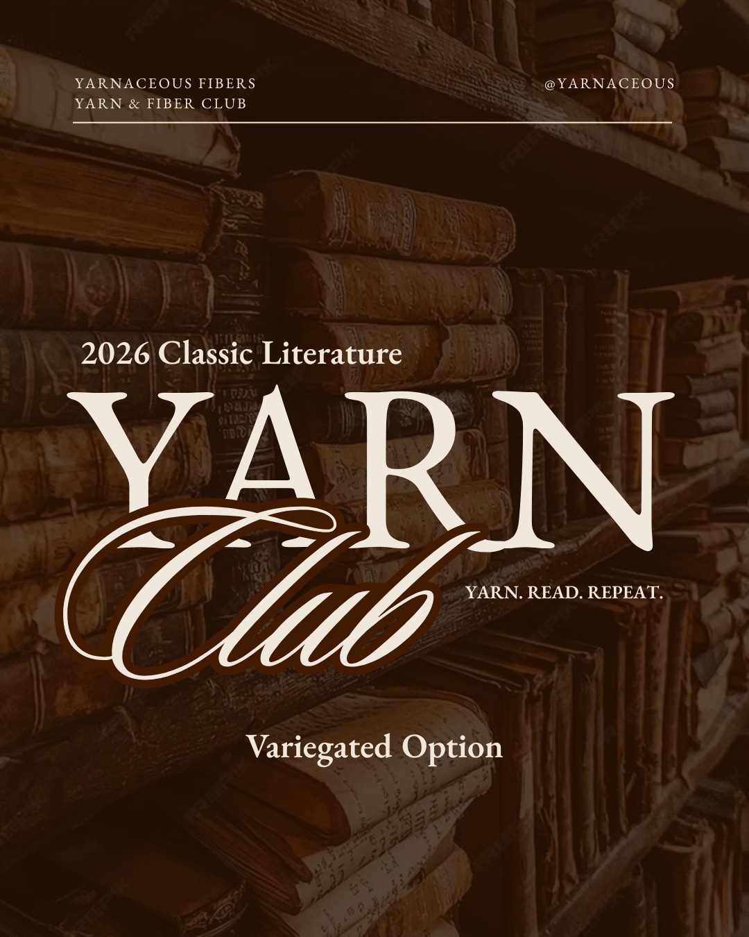 Option to add extra skein for $300. This option does not include the stitch markers and card and can only be purchased as an add on to your existing club. Use our Classic Literature Tonal Yarn & Fiber Club to purchase the extra skein if looking for a tonal add on.Â