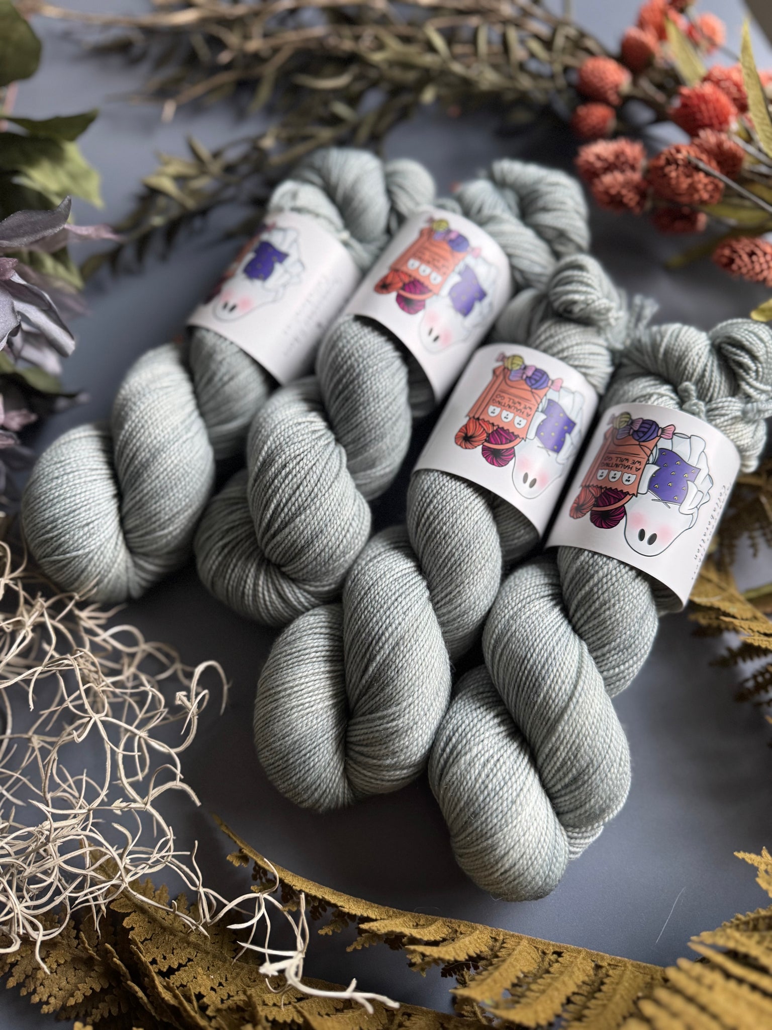 Styra Fingering: 80% Superwash Merino and 20% Nylon. 400 yards per 100 gram skein.