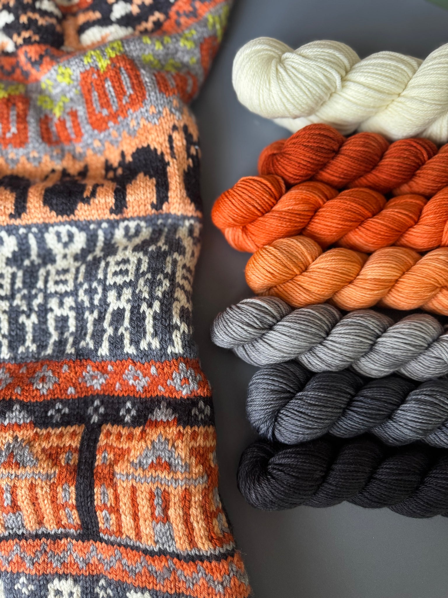 Be our Ghost and knit or crochet your ghost friends, haunted houses, pumpkins and more with our Ghost Story set that is the perfect fade from black to white to deep orange! This set is perfect for the Haunted Doodle Collection by Jamie Lomax and crocheting gorgeous Halloween themed projects all year long!