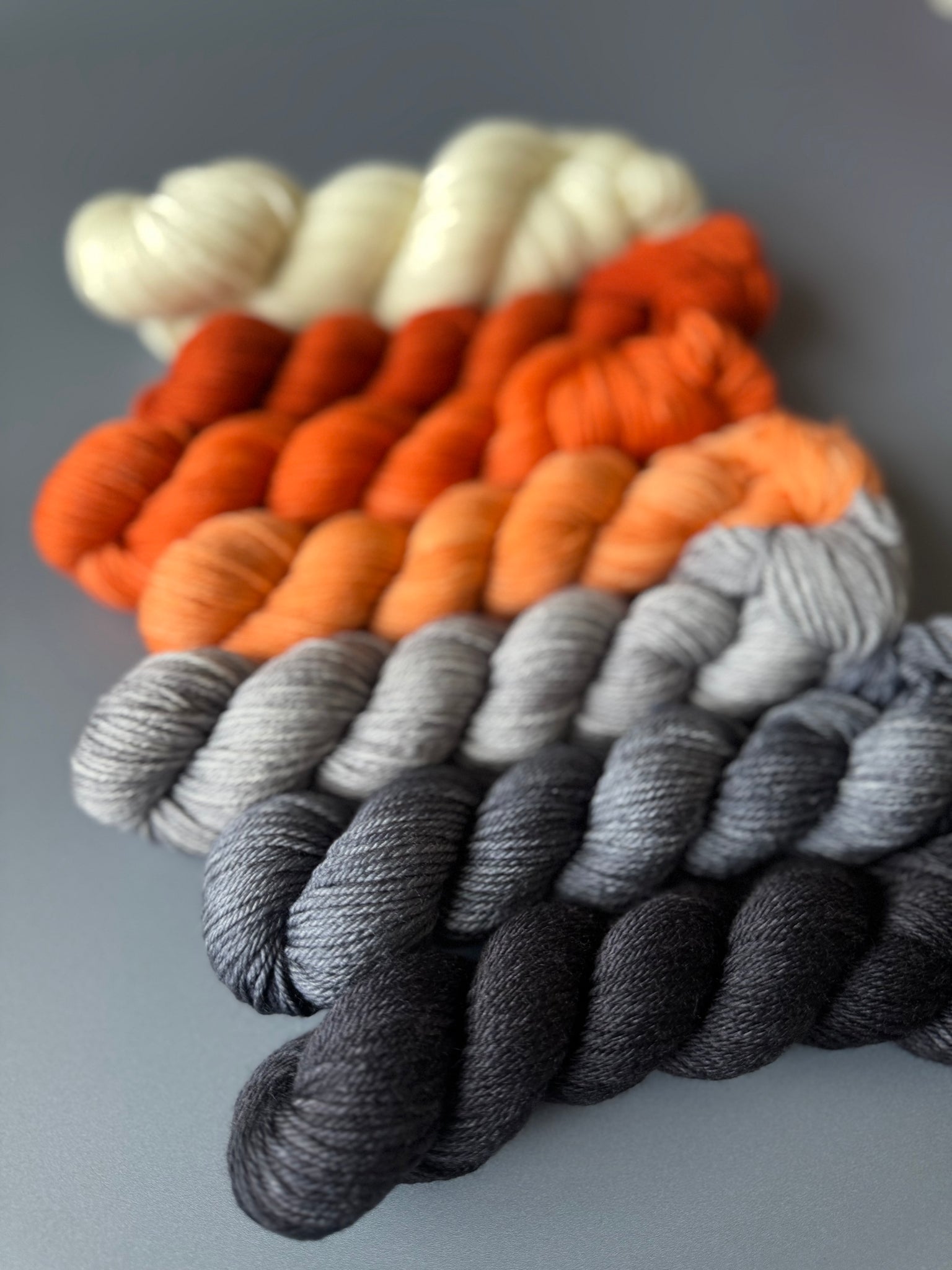 Salta Fingering: 85% superwash merino wool and 15% nylon. 437 yards per 100 gram skein. 87 yards per 20 gram mini.